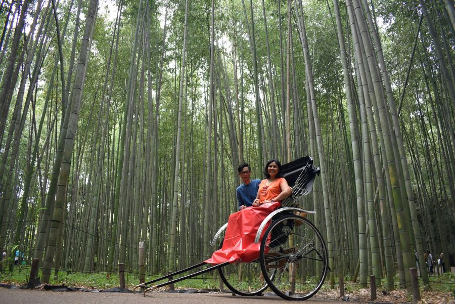 Pintu kayu unik yang menjadi lokasi tumpuan orang ramai merakam foto.
