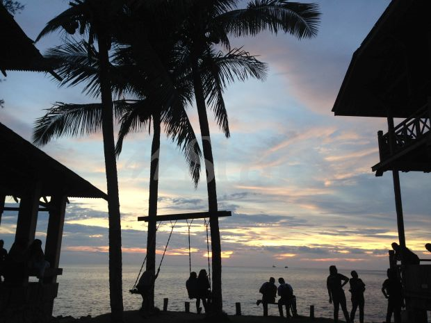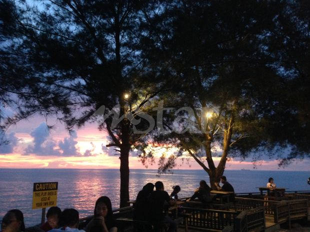 Selain duduk di bangku dan di atas pasir, ada juga yang berayun di buaian tatkala menyaksikan matahari terbenam. Pendek kata, suasana pada waktu itu sungguh mengasyikkan.