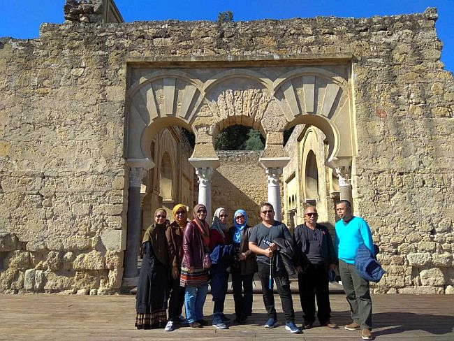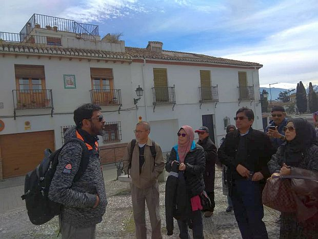 Ahli sejarah, Tariq Mahmood (kiri) menerangkan sejarah Andalusia kepada pelancong Malaysia.