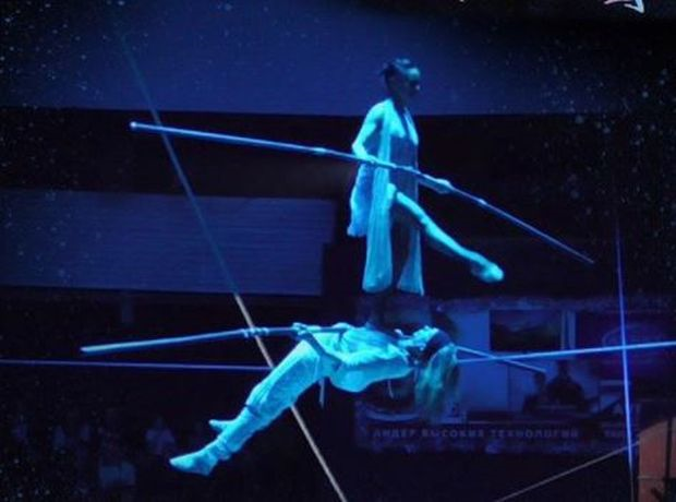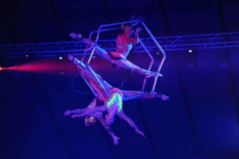 Dipersembahkan oleh The Tokmachev Troupe, mereka lincah berayun di udara sambil berpaut pada tali.