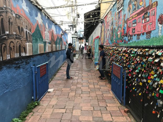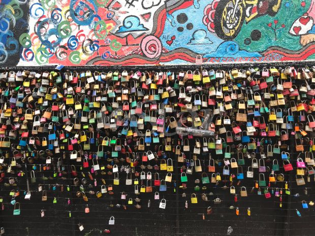Orang ramai turut menjadikan dinding Love Lock sebagai latar belakang foto mereka.