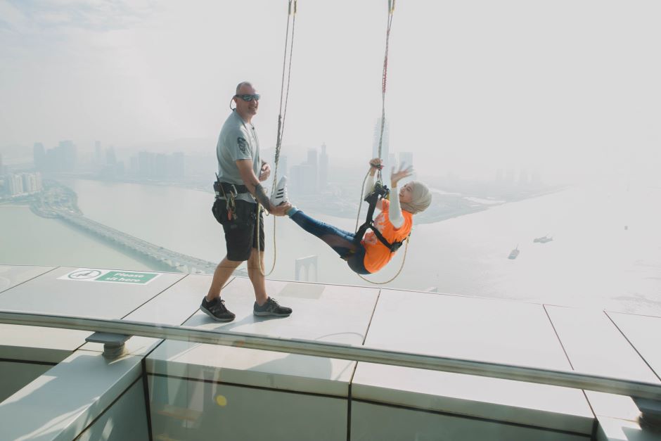 Anda boleh melihat seluruh bandar Macau dari atas dan terdapat aktiviti lasak yang anda boleh cuba seperti Sky Walking dan Bungee Jumping.