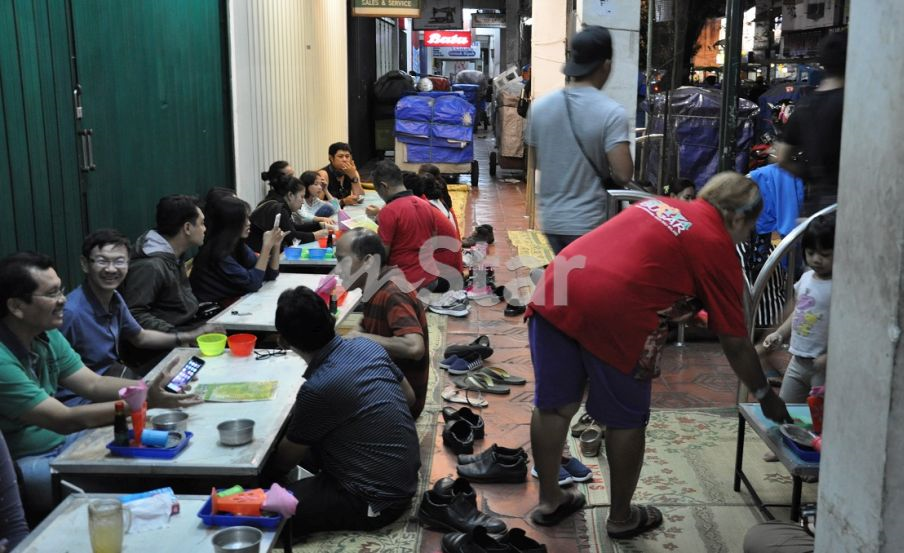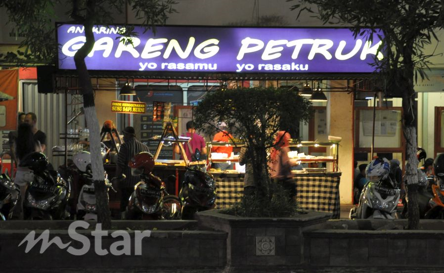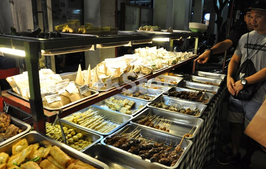 Makan sambil bersila di kaki lima jalan merupakan aktiviti popular di kota Jogjakarta.