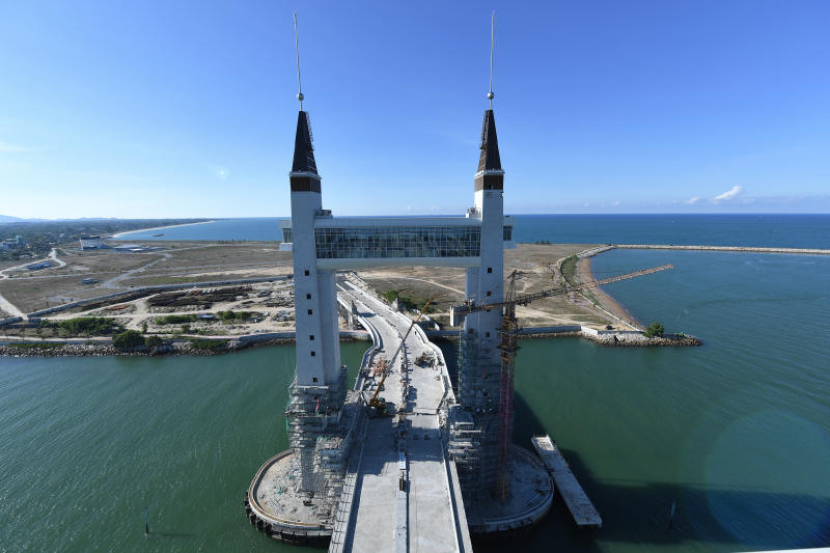 Jambatan yang mula dibina pada Ogos 2014 itu boleh diangkat di bahagian tengah untuk laluan kapal. -Bernama