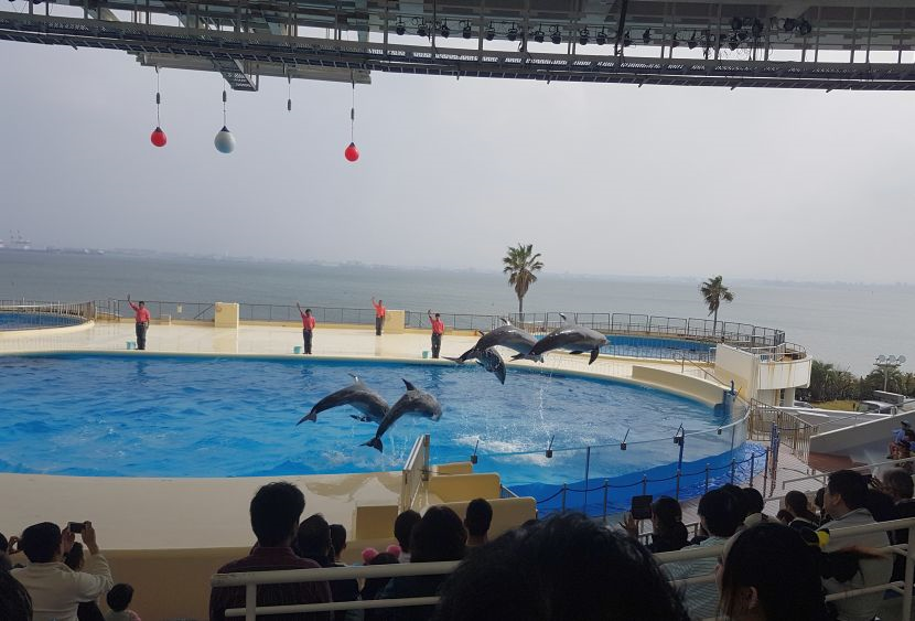 Menyaksikan pertunjukan ikan lumba-lumba di Marine world