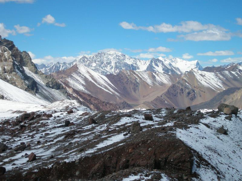 Pemandangan indah dari puncak Gunung Aconcagua, Argentina.