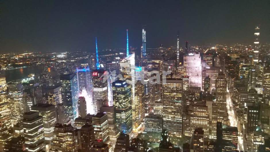 Pemandangan malam dari tingkat dek pemerhatian di tingkat 86, Empire State Building.