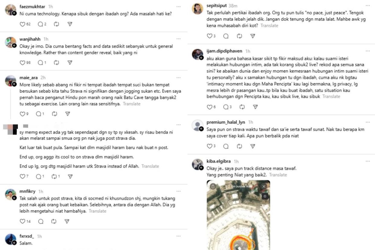 "Saya secara peribadi rasa lebih baik dia rekod Strava sebab tak perlu berlebihan pegang telefon sambil live. Pada masa sama orang boleh sedar nak umrah ni kena stamina tinggi juga terutama nak buat tawaf sunat dekat tingkat atas tu," komen beberapa netizen.