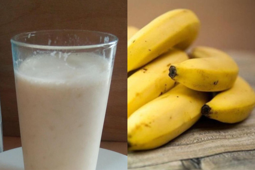 1) Masukkan pisang dan susu ke dalam pengisar, kemudian kisar sehingga sebati.