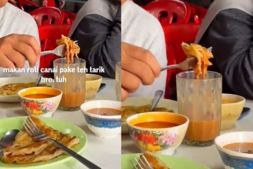 Di TikTok, tular video memaparkan seorang pelancong dari Indonesia yang mencicah roti canai dengan teh tarik ketika bersarapan.