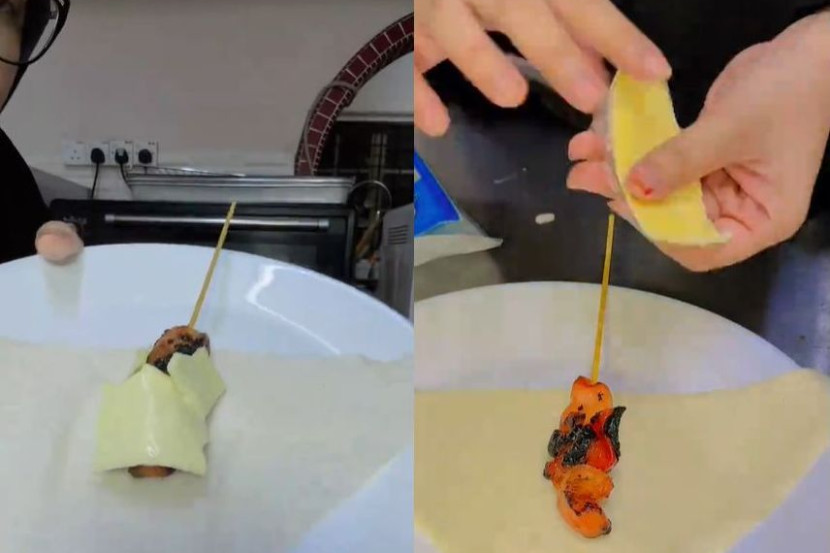 DALAM lembut, luar rangup! Kombinasi tekstur daging lembut yang dibalut dengan kulit popia rangup menjadikan hidangan Sate Bhalut oleh penyanyi Mark Adam menjadi bualan ramai. Namun, ada pula pelanggan yang mempertikaikan harganya memandangkan set tiga cucuk sate termasuk minuman dijual pada harga RM21.90. Menurut seorang pengguna TikTok dikenali sebgaai Raysha91, dia berjaya melakukan penjimatan selepas menghasilkan Sate Bhalut versi sendiri. "Sate Bhalut viral aku nak buat sendiri. Bahan-bahan mudah saja, kau beli je la sate yang dah siap. Lepas tu beli kulit popia dan cheese. Anda juga boleh meletakkan kepingan keju dalam balutan sate itu. "Korang balut la, ikut suka nak tebal atau nipis. Aku memang suka cheese, jadi aku letakkan cheese. Lepas tu goreng tak perlu lama, pastikan minyak banyak," ujarnya dalam video itu. Menurut wanita itu, dia cuma membelanjakan RM38 untuk 30 cucuk sate, RM8 bagi membeli kulit popia dan RM10 untuk keju. Cara-cara 1. Jika anda mahu menjimatkan masa, boleh saja beli sate yang sudah siap. 2. Kemudian, hamparkan kulit popia dan letakkan sate serta kepingan keju. 3. Balut sate dengan kulit popia, goreng dalam minyak panas. 4. Siap untuk dihidang dan boleh dicicah bersama kuah kacang!