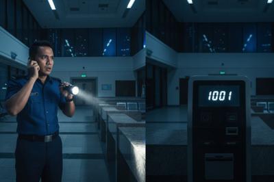 Pak guard cabut lari, bank sunyi tiba-tiba meriah 'beroperasi' waktu malam... Nombor giliran berbunyi sendiri