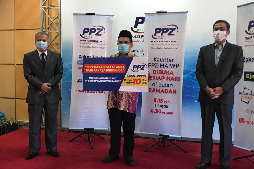 Ketua Pegawai Eksekutif PPZ-MAIWP, Ahmad Shukri Yusoff (tengah) pada sidang media Kempen Zakat 10 Terakhir Ramadan "Segerakan Zakat Anda: Raih Pahala Berganda" di Wisma PPZ-MAIWP Kuala Lumpur.