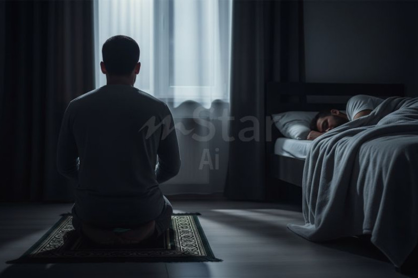 DEMI enggan mengganggu tidur rakan sebilik, seorang individu memilih untuk mendirikan solat Isyak dalam gelap selepas pulang lewat malam.