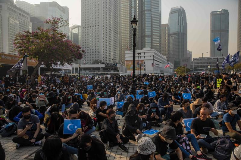 Penduduk di Hong Kong berhimpun secara aman bagi menunjukkan sokongan terhadap Muslim Uighur yang tertindas di Xinjiang.