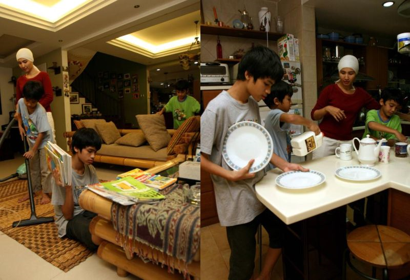 Libatkan akitiviti mengemas rumah bersama anak-anak turut dapat mendidik mereka tentang tanggungjawab.