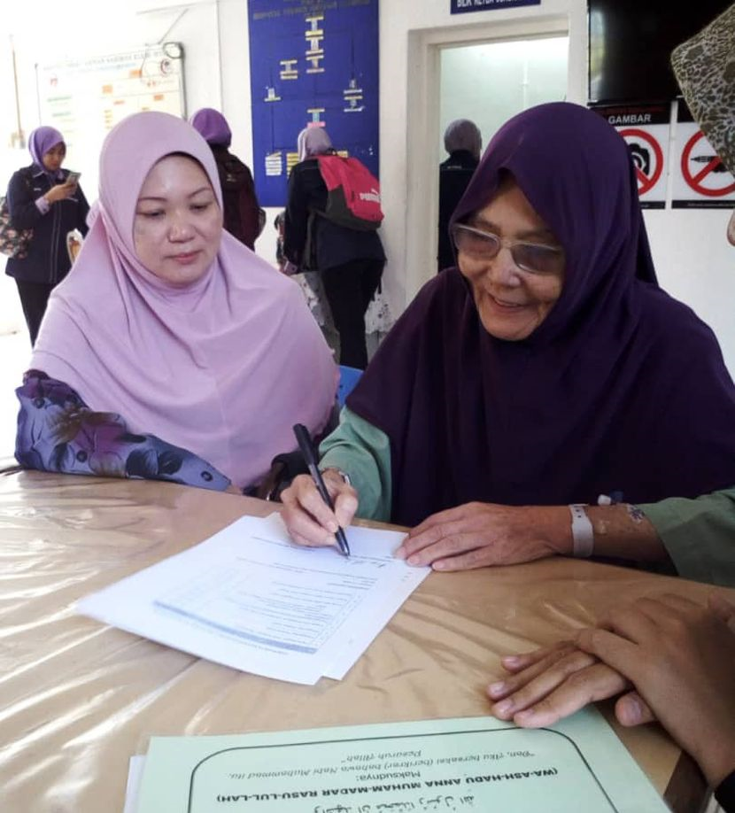 Kwai Leng (kiri) ketika menyaksikan arwah ibunya memeluk Islam di hospital.