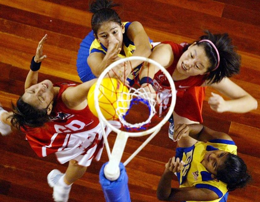 Fazdlun (dua dari Kiri) beraksi dalam salah satu pertandingan bola jaring.
