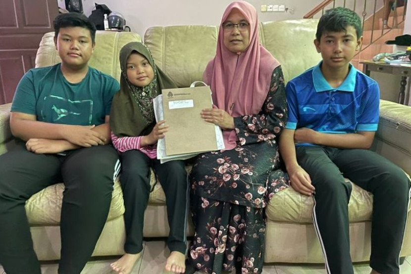 Salina dan tiga anaknya bersyukur dan terharu kerana keluarga mereka mendapat perhatian Perkeso.