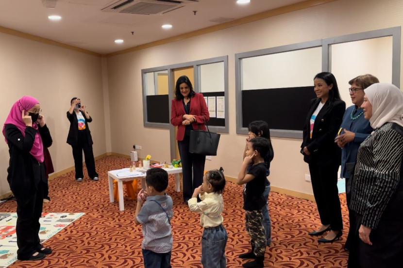 Sesi temubual bersama Residen Koordinator UN, Karima El Korri (kiri), Menteri Pembangunan Wanita, Keluarga dan Masyarakat, Datuk Seri Nancy Shukri (tengah) dan pengasas Kiddocare, Nadira Yusoff (kanan).
