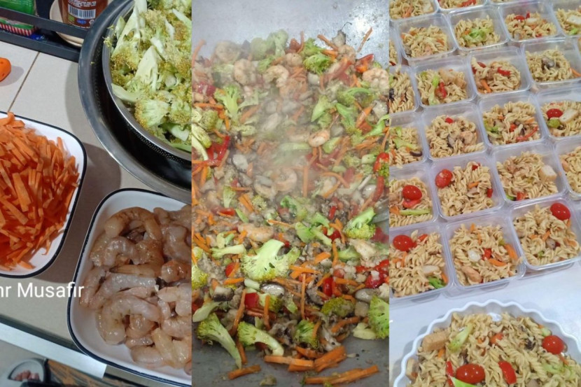 Makanan yang sudah siap dibungkus untuk pelajar dan guru di sekolah anaknya.