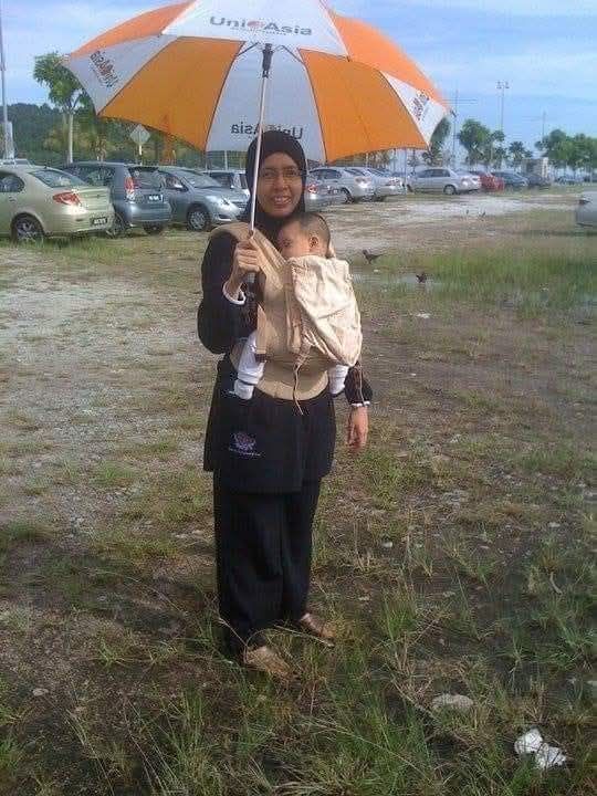"Alhamdulillah, babywearing memang memudahkan urusan ibu bapa," kongsinya sambil memuat naik sekeping gambar kenangan ketika menggendong anak keduanya kira-kira 15 tahun lalu.