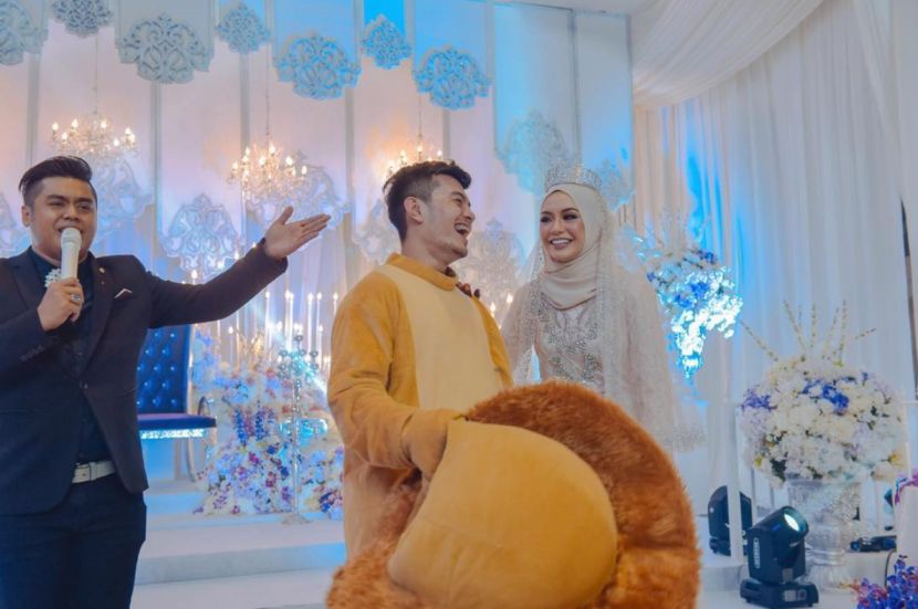 Masih sempat membuat kejutan buat isteri pada majlis perkahwinan, November 2017. Foto Hafiz Mahamad