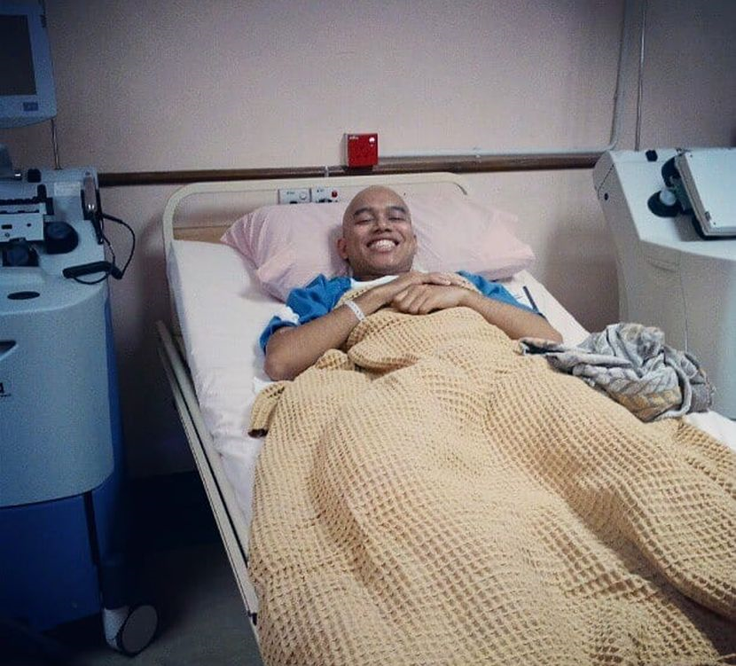 Biarpun menahan sakit ketika menjalani rawatan kanser, Dr Mukhlis masih mampu melakar senyuman. - Instagram @muks83