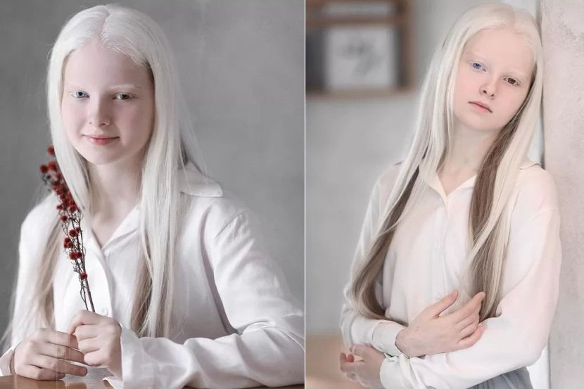 Gadis istimewa ini adalah ‘gabungan’ sempurna albinisme yang menjadikan kulitnya seputih salji dan rambutnya sangat pucat, serta heterochromia yang menjadikan matanya berbeza warna.