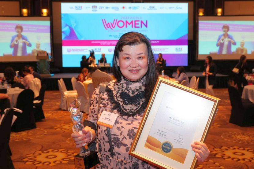 KETUA pegawai kandungan Kumpulan Media Star Esther Ng menerima Anugerah Editor Cemerlang Wanita Dunia oleh Institut Strategik KSI untuk Asia Pasifik pada Isnin (15 Mei).