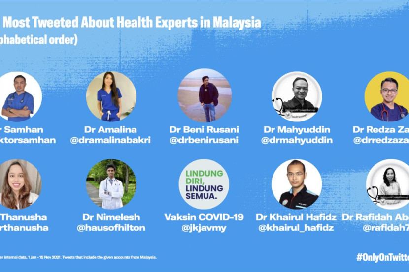 Daripada Dr Samhan (@DoktorSamhan) Dr. Amalina (@DrAmalinaBakri), Dr. Beni Rusani (@DrBeniRusani), Dr. Mahyuddin (@DrMahyuddin), dan Dr. Redza Zainol (@Redza Zainol), doktor telah aktif menggunakan Twitter untuk membincangkan banyak isu berkaitan isu kesihatan, petua dan mesej positif untuk membantu mereka yang memerlukan.