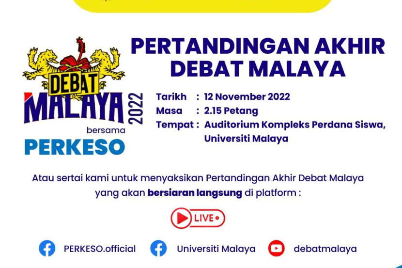 SENTIASA komited dalam memastikan masyarakat khususnya generasi muda mempunyai kesedaran tentang perlindungan keselamatan sosial, Pertubuhan Keselamatan Sosial (PERKESO) tampil sebagai penaja utama Pertandingan Debat Malaya 2022 (DMbP 2022). Menerusinya, bakat dan kemahiran berkomunikasi dalam kalangan golongan muda atau Gen Z dapat diasah. Edisi pertandingan tahun ini memberi tumpuan kepada topik berkaitan kepentingan keselamatan sosial seperti pelaksanaan mandatori Maternity Benefit di bawah Akta Sistem Insurans Pekerjaan 2017 dan cadangan skim perlindungan sosial sebagai subjek wajib lulus Institusi Pendidikan Tinggi Malaysia. Generasi muda perlu dipersiapkan dengan pemahaman tentang perlindungan keselamatan sosial. - foto hiasan Bermula 4 November lalu, DMbP 2022 yang dianjurkan Majlis Orator Universiti Malaya (MORUM) menyaksikan 40 pasukan generasi muda daripada pelbagai institusi, universiti, kolej, dan sekolah berprestij di seluruh Malaysia menyahut cabaran membahaskan topik-topik menarik. Sedar tak sedar DMbP 2022 kini sudah memasuki pusingan akhir yang dijadualkan pada Sabtu, 12 November. Lebih mengujakan apabila pendebat terbaik DMbP 2022 bakal dilantik menjadi Duta Muda PERKESO. Menurut Ketua Eksekutif PERKESO, Datuk Seri Dr Mohammed Azman Aziz Mohammed, pertandingan tersebut dapat mendekatkan jenama PERKESO dengan golongan belia dan pada masa sama meningkatkan pemahaman mereka tentang perlindungan keselamatan sosial. Mohammed Azman mahu generasi muda dibekalkan dengan pengetahuan dan kemahiran yang mencukupi. “Adalah penting untuk golongan muda mempelajari tentang keselamatan sosial sebelum mereka menyertai tenaga kerja. “Kita mahu memastikan belia dibekalkan dengan pengetahuan, kemahiran, dan sokongan yang mencukupi untuk diintegrasikan ke dalam pasaran buruh dengan memahami manfaat keselamatan sosial kepada individu, keluarga dan negara,” katanya kepada mStar. Terdahulu, peringkat separuh akhir DMbP 2022 menyaksikan perdebatan sengit antara dua pasukan daripada Universiti Malaya dan juga pasukan antara Institut Pendidikan Guru Malaysia (IPGM) dan Universiti Pertahanan Nasional Malaysia. Sementara itu, Ketua Pegawai Bahagian Komunikasi dan Hal Ehwal Korporat PERKESO, Izad Hj. Raya berkata, program itu juga diharapkan dapat melahirkan lebih ramai golongan pelajar berkeyakinan tinggi terutama dalam aspek komunikasi di khalayak ramai. “Kami yakin Debat Malaya bersama PERKESO 2022 dapat menyumbang kepada pembangunan modal insan cemerlang dan juga menjadi pemangkin dalam membentuk generasi pemimpin yang masa hadapan,” ujarnya. Untuk rekod, DMbP 2022 diadakan secara hibrid di mana pusingan awal serta suku akhir dijalankan secara dalam talian manakala peringkat separuh akhir dan akhir akan dijalankan secara fizikal di Universiti Malaya dengan mengekalkan Prosedur Operasi Standard (SOP) yang perlu. Rakyat Malaysia dijemput menyaksikan pusingan akhir DMbP 2022 yang akan berlangsung pada Sabtu, 12 November di Auditorium Kompleks Perdanasiswa, Universiti Malaya pada pukul 2:15 tengah hari atau boleh menonton secara langsung di facebook PERKESO https://www.facebook.com/PERKESO.Official layari di SINI. Dapatkan info dengan mudah dan pantas! Join grup Telegram mStar DI SINI