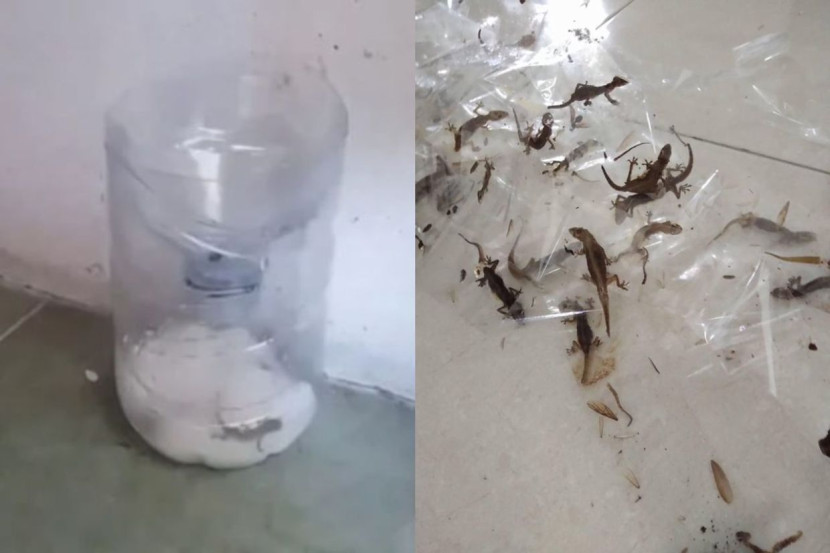 Bercerita tentang pengalamannya, wanita ini berkata dia berjaya menangkap 54 ekor cicak setelah meninggalkan rumah selama tiga minggu.