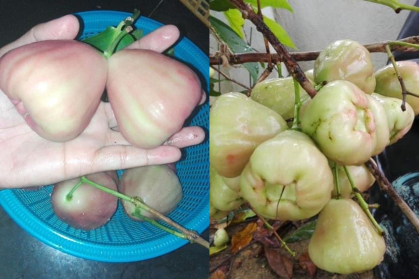 Buah jambu kelihatan lebih besar setelah disembur air baja yang dibuat oleh Sasya.