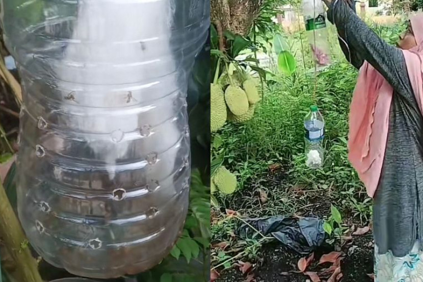 Wanita tersebut berkongsi cara-cara menghasilkan perangkap lalat buah DIY dengan hanya menggunakan botol air mineral plastik dan ubat khas untuk serangga perosak berkenaan.