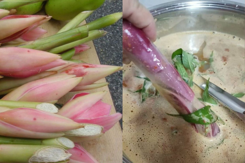 1) Bersihkan bunga kantan dengan air, kemudian belah.