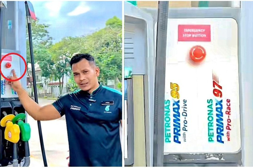 Ketika sedang mengisi petrol atau diesel, mungkin ada dalam kalangan kita yang perasan kewujudan butang kecemasan (emergency button) berwarna merah pada pam minyak.