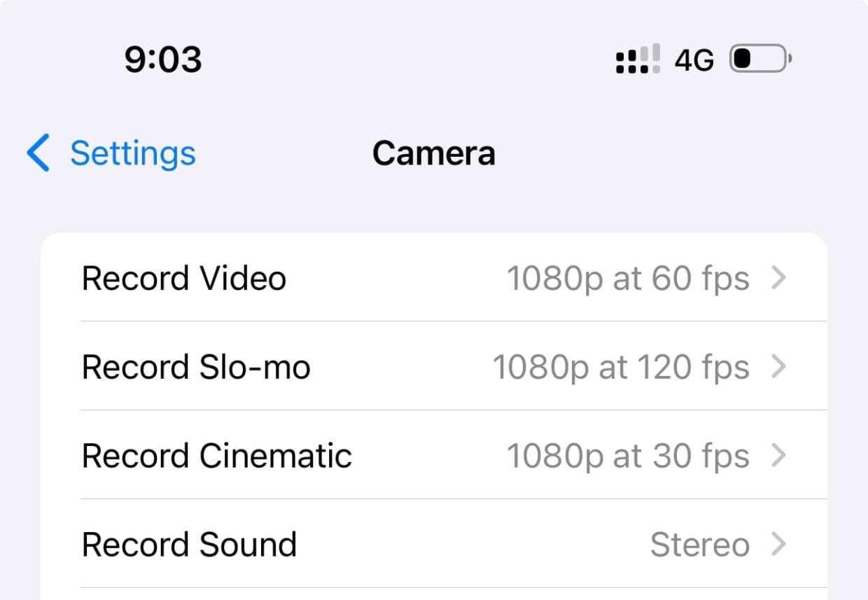 Contoh tetapan rakaman video bagi pengguna iPhone.