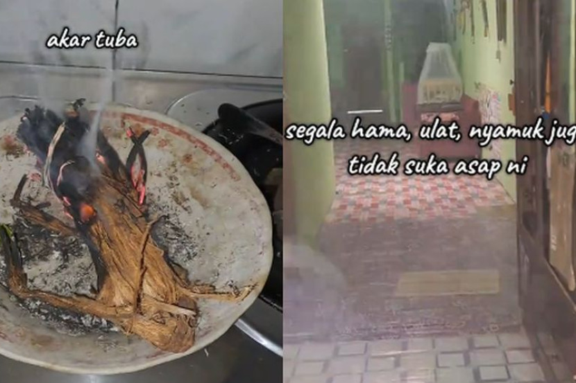 Rumah diasapkan dengan akar tuba yang telah dibakar.