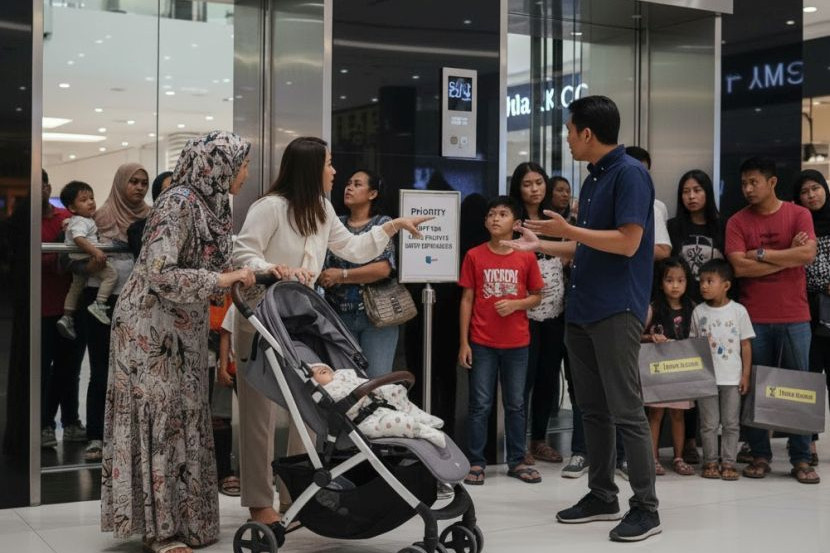 Perbincangan tercetus selepas beberapa ibu bapa berkongsi pengalaman mereka yang terpaksa 'berperang' untuk masuk ke lif bersama stroller bayi kerana dipotong oleh individu yang didakwa sihat dan tidak berkeperluan khas.