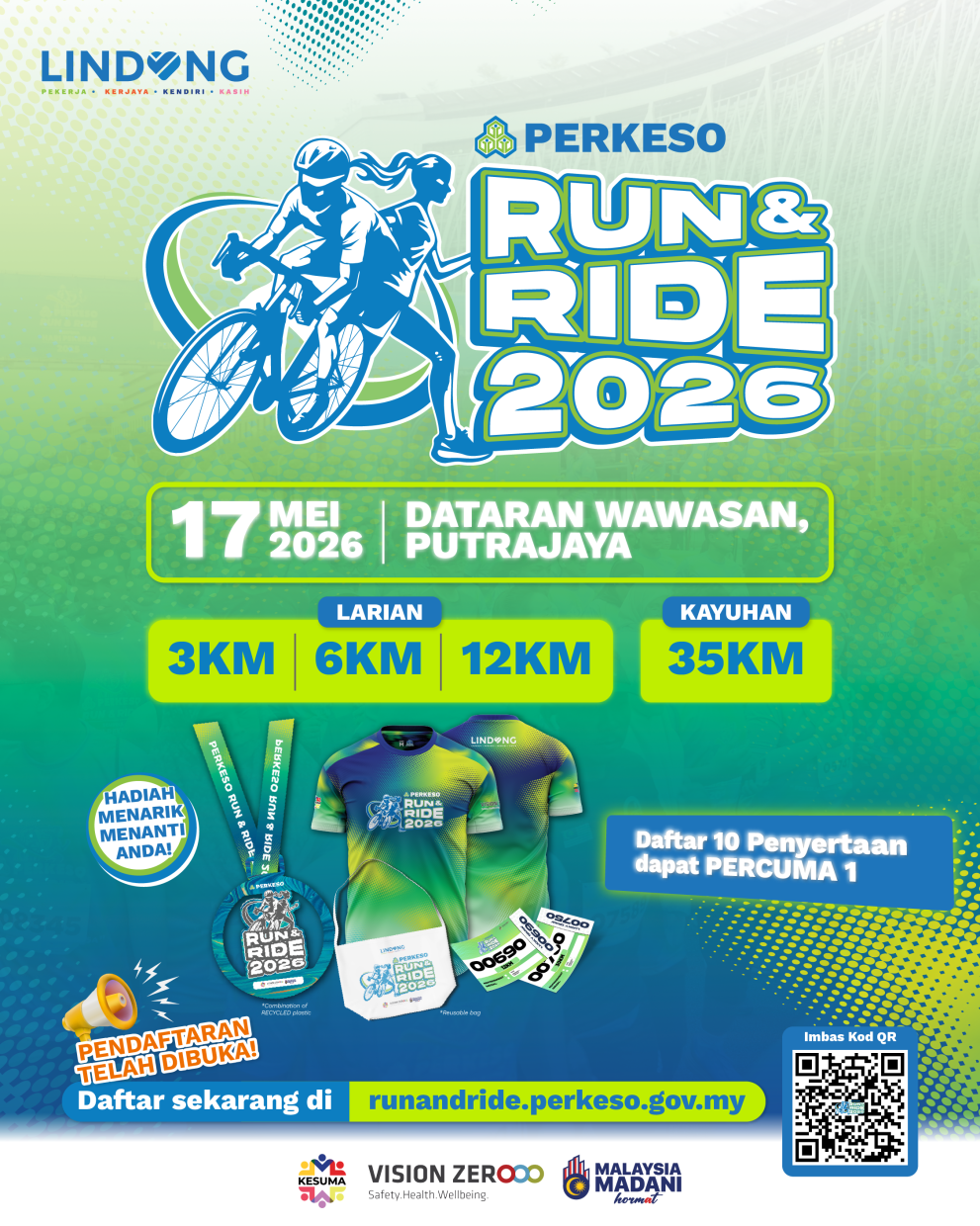 SAMBUTAN Hari Raya Aidilfitri memang sinonim dengan kemeriahan pelbagai juadah tradisional yang menjadi kegemaran ramai.Dalam suasana penuh keceriaan itu, ramai yang cenderung menikmati makanan secara tidak terkawal sehingga pengambilan kalori harian meningkat tanpa disedari. Hidangan seperti ketupat, lemang, rendang dan aneka kuih raya sememangnya enak namun kebanyakannya tinggi kalori, lemak dan gula jika diambil secara berlebihan.Lebihan tenaga daripada makanan ini akan disimpan sebagai lemak jika tidak digunakan melalui aktiviti fizikal. Gaya hidup yang lebih santai sepanjang musim perayaan turut memainkan peranan apabila aktiviti fizikal berkurang dan kadar metabolisme menjadi lebih perlahan. Pengambilan karbohidrat yang tinggi pula boleh meningkatkan paras insulin, menjadikan badan lebih cenderung menyimpan lemak serta sukar untuk membakarnya.Dalam usaha menggalakkan masyarakat kembali aktif, Pertubuhan Keselamatan Sosial (PERKESO) terus memainkan peranan untuk memupuk budaya lebih sihat.Menurut PERKESO, kesejahteraan rakyat bermula dengan tubuh badan yang sihat dan produktif.Sehubungan itu, orang ramai dialu-alukan untuk menyertai PERKESO Run & Ride 2026 sebagai langkah mudah untuk kembali aktif selepas musim perayaan.Acara tahunan ini akan berlangsung pada 17 Mei 2026 di Dataran Wawasan, Putrajaya, dengan kategori larian 3km, 6km dan 12km, serta kayuhan 35km.Peserta juga boleh mengambil peluang menyertai secara berkumpulan menerusi tawaran "Daftar 10, Percuma 1".Lebih menarik, selain beriadah bersama keluarga dan rakan-rakan, peserta berpeluang memenangi pelbagai hadiah termasuk hadiah utama berupa sebuah kereta.Orang ramai yang berminat boleh mendaftar di runandride.perkeso.gov.my dan jadikan ini antara langkah kecil untuk kembali kepada gaya hidup yang lebih sihat dan aktif.
