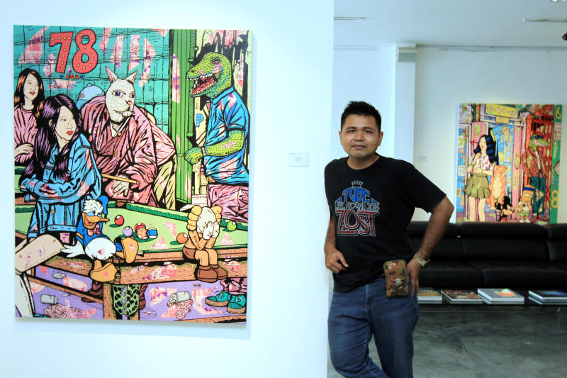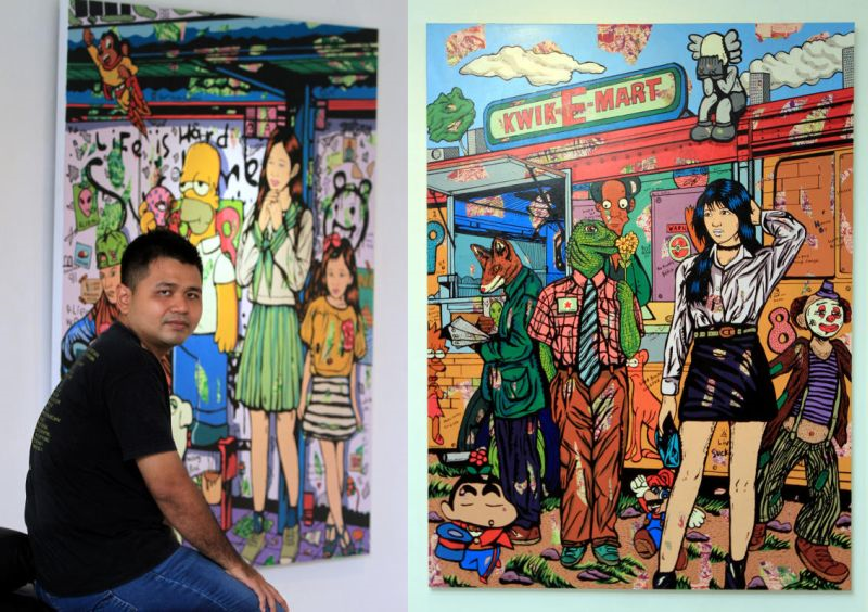 Itu antara beberapa karakter yang dizahirkan di atas kanvas pelukis berusia 32 tahun itu.