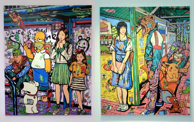 Antara karakter kartun yang digunakan dalam lukisannya.