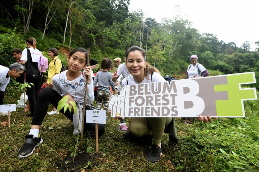 Artis Daphne Iking bersama anaknya Isobel Daniella (kiri) bergambar selepas melakukan aktiviti penanaman pokok karas pada Program Belum Forest Friends (BFF) pada November lalu. - Bernama