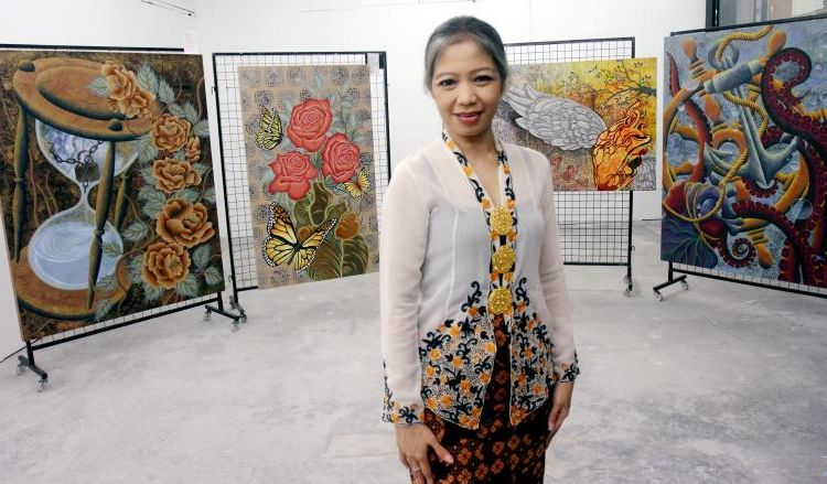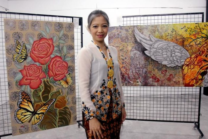 KELIBAT seorang wanita kecil molek berkebaya nyonya lengkap dengan sejambak mawar putih yang diselit pada ikatan rambutnya mencuri perhatian ketika menghadiri pertunjukan seni lukis Artscape My yang diadakan di Cyberjaya baru-baru ini.