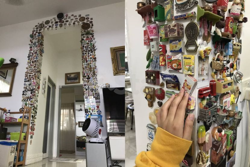 Ruangan dinding rumah keluarga Izzati dipenuhi magnet pelbagai bentuk.