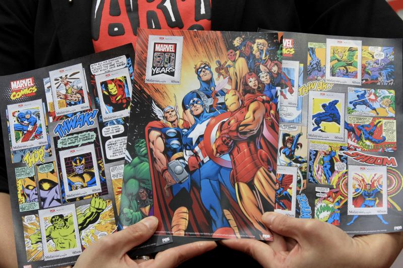 Sebanyak 10 setem karektor dikeluarkan berdasarkan kegemaran peminat termasuk Captain America, Iron Man, Thor, Hulk, Spider-Man, Doctor Strange, Black Widow dan Black Panther termasuk Loki dan Thanos.