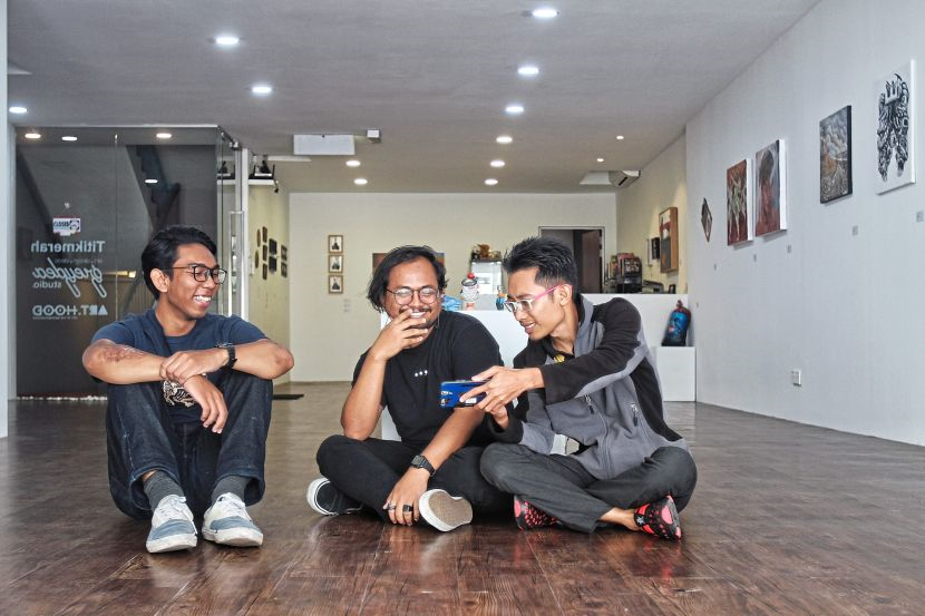 TIGA anak muda iaitu Raja Azeem Idzham, Adeputra Mastri dan Latif Maulan merupakan pengasas kepada Galeri TitikMerah yang mula dibuka pada 2014.