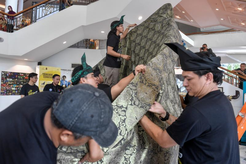 Kain broket sepanjang 34 kaki digunakan bagi membina replika setinggi 3.66 meter.