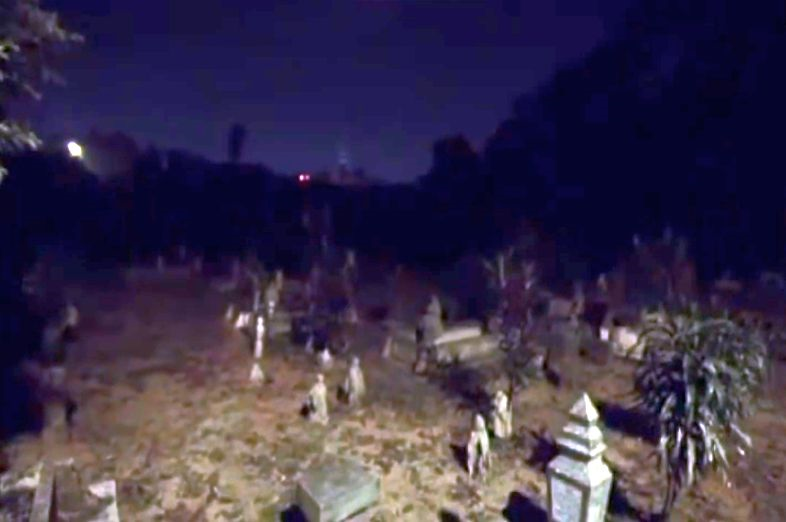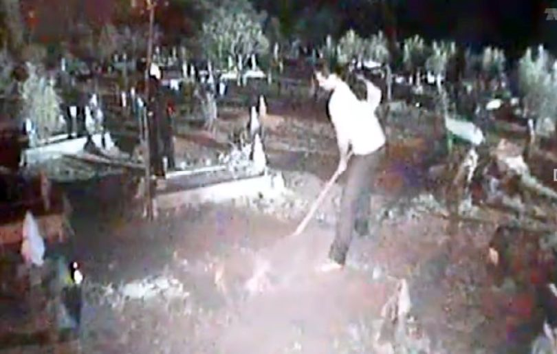 Rakaman kamera infra merah ketika Saiful Azmi melakukan tugasannya sebagai penggali kubur waktu malam.